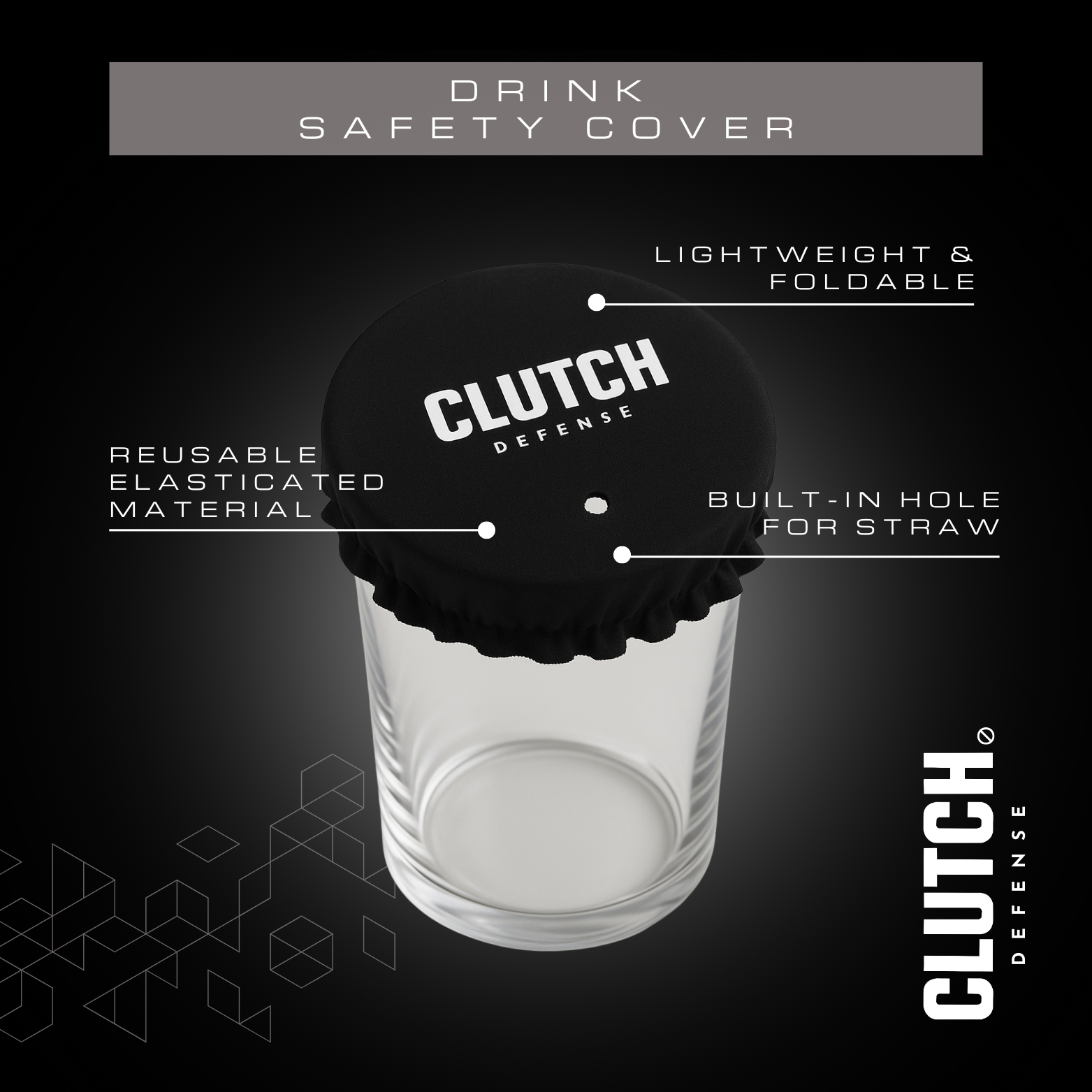 Lock it down. The Shield is a reusable drink cover that secures any cup or glass, keeping unwanted hands and dangerous substances out. Made to be Lightweight, washable and portable, it comes with its own faux leather pouch keychain so it’s always ready to go when you are.